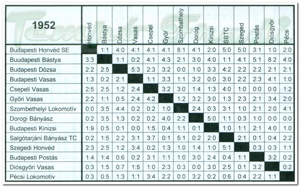 1952. éves NB. – Bajnok: Bp. Honvéd, II. Bp. Bástya, III. Ú. Dózsa.