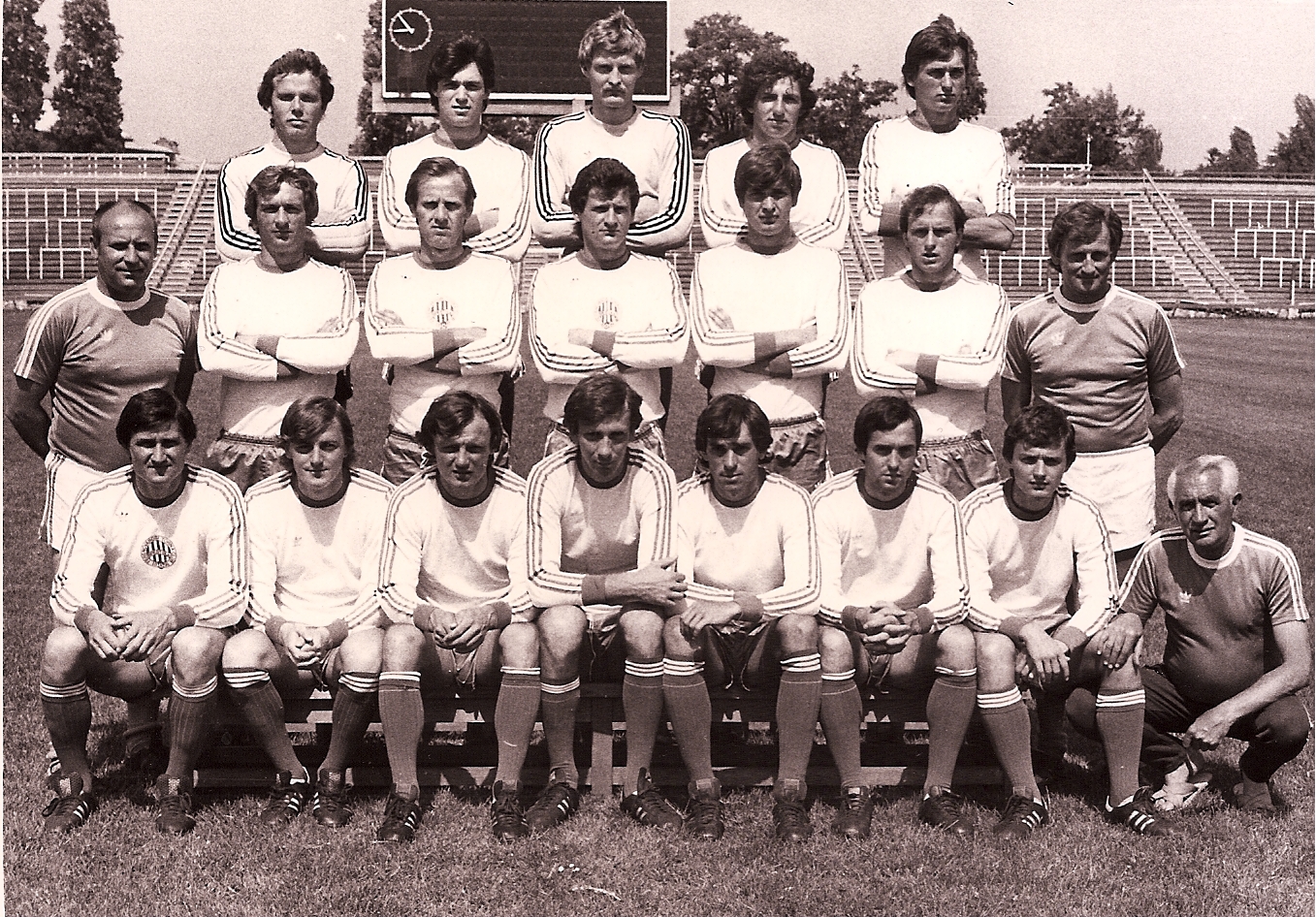 Hátsó sor: Hajdú J., Tepszics, Zsiborás, Esterházy, Mészöly P. Középen: Friedmanszky Zoltán edző, Vépi, Martos, Bálint, Rubold, Magyar, Rózsa Lajos pályaedző. Elől: Pusztai, Ebedli, Szokolai, Nyilasi, Csider, Takács L., Pogány, Takács József gyúró
