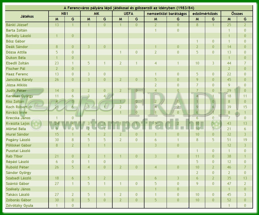 Ferencváros: Zsiborás – Jancsika, Judik, Rab, Takács – Ebedli, Bánki, Pogány – Murai, Koch, Pölöskei