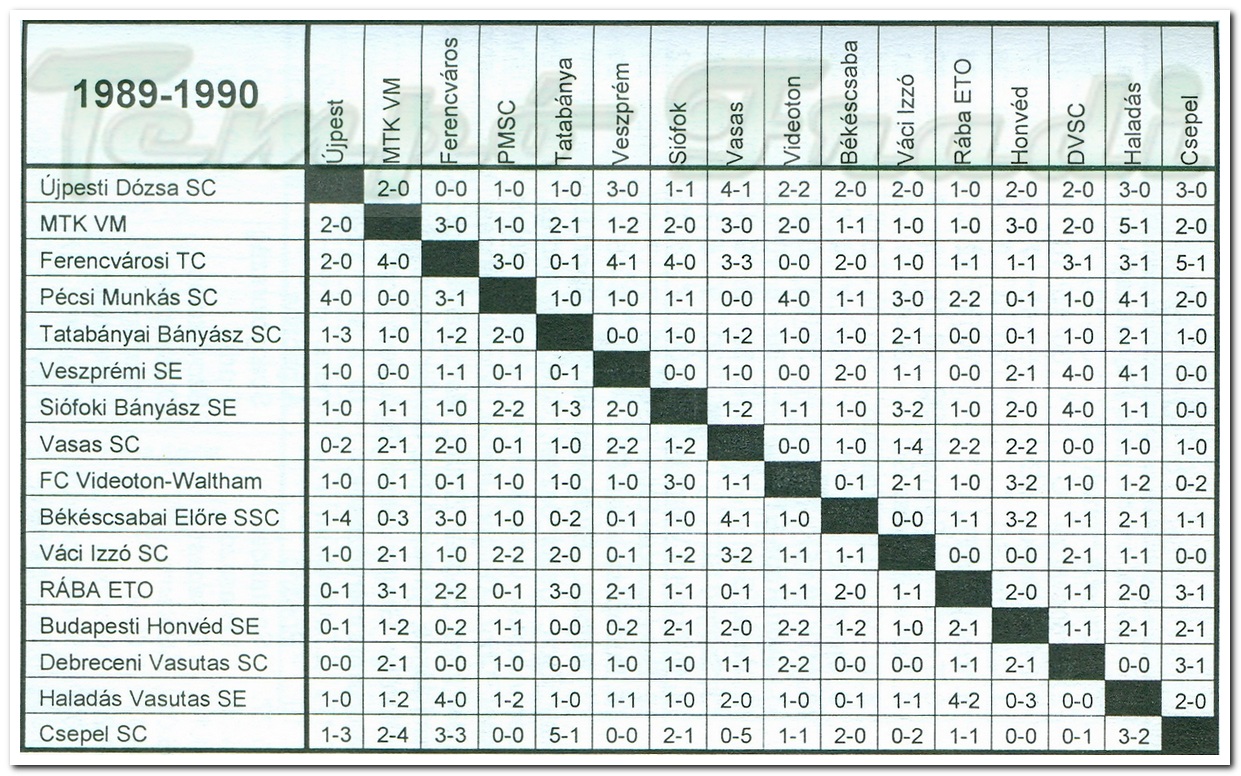| Az 1989/90. évi Nemzeti Bajnokság végeredménye | ||||||