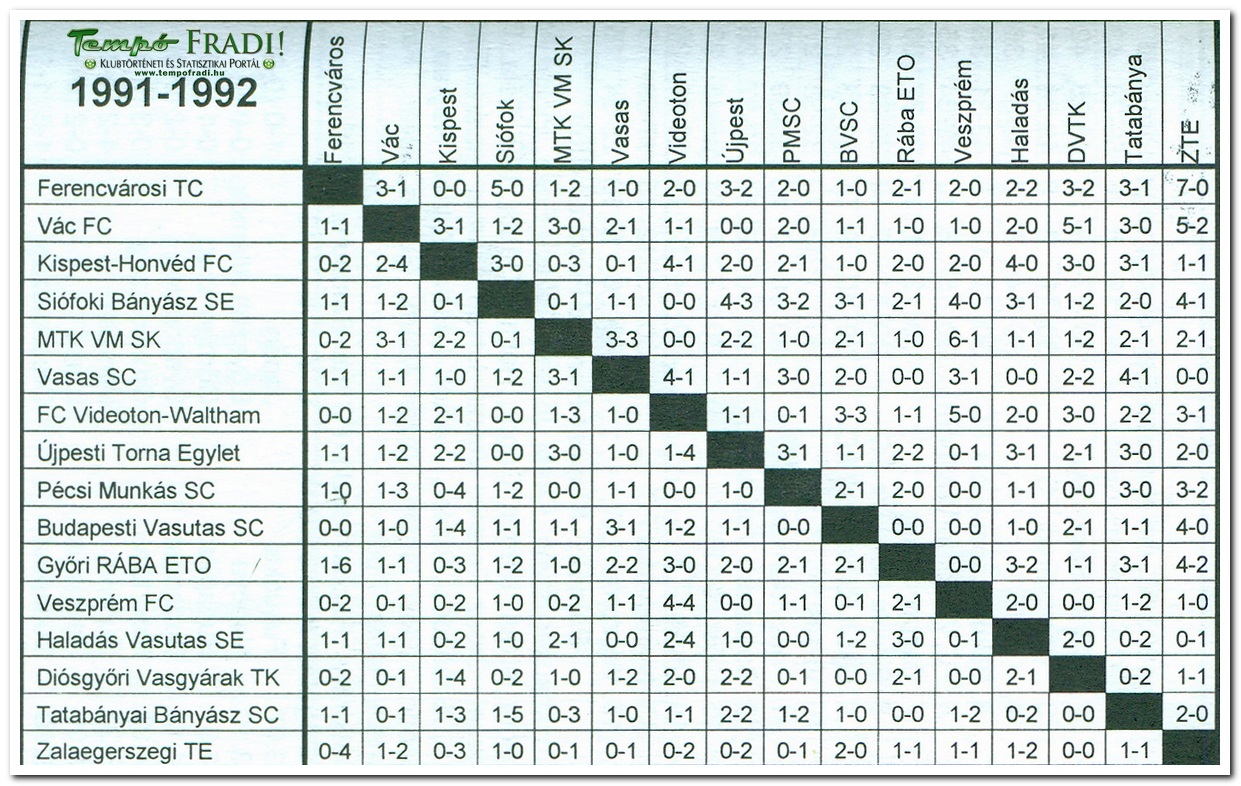 | Az 1991/92. évi Nemzeti Bajnokság végeredménye | ||||||