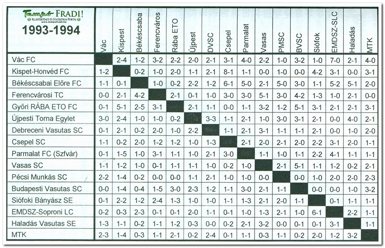| Az 1993/94. évi Nemzeti Bajnokság végeredménye | ||||||