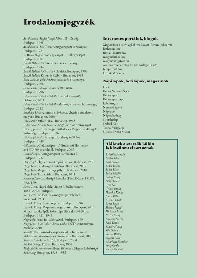 Nagy sportújságíró elődünk, Feleki László örökbecsű aforizmája szerint nemes lélekre vall, ha valaki a döglött oroszlánba rúg. Az élőnek még fájna. Ne tegyük ezt, hisz nem teszik ezt e könyv szerzői sem. Mert most épp azt tapasztaljuk, milyen a magyar futball jelene, találgatjuk, hogy milyen lesz a jövője, de elolvashatjuk, hogy milyen fényes és kitörölhetetlen a múltja.