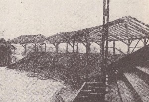 „Letakarították a tribünégés üszkös gerendáit, s most az összeégett faanyagot arra használták fel, hogy a B-tribün előtti lejtős földdombokat lépcsőzettel látták el. A földtöltésbe körülbelül 1 méter széles lépcsőket vágtak, amelyek kissé lejtenek előre és így három sorban is elhelyezkedhetnek az állóhelyes szurkolók. A lépcsőket a leégett tribünből kiszedett deszkákkal támasztották ki. A munkások egyike maga is a törzsközönség tagja lehet az állóhelyen, hiszen így nyilatkozott a munkáról: — Hát ennyi hasznunk lett abból a tribünégésből. Ha tudná a vezetőség, hogy mennyit szidtuk mi innen az állóhelyről, miközben féllábunkkal valami tégladarabon állva egyensúlyoztunk egész délután, hogy le ne csússzunk valamelyik gólról. Hát most aztán rendbe hozzuk a dolgot.. .”