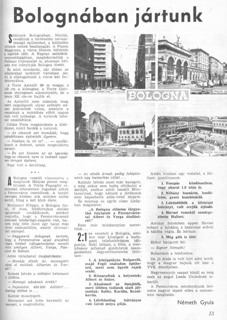 Kategória: Jegyzet | Címke: 1968, Albert Flórián, Bologna FC 1909, Páncsics Miklós dr., Rákosi Gyula, Varga Zoltán, VVK