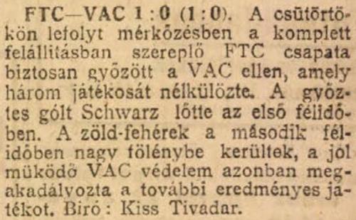 1922.VI.8. VAC – FTC 0:1 Közzétéve: 2009. január 22. csütörtök | Szerző: K@rcsi Egy kattintás ide a folytatáshoz.... →