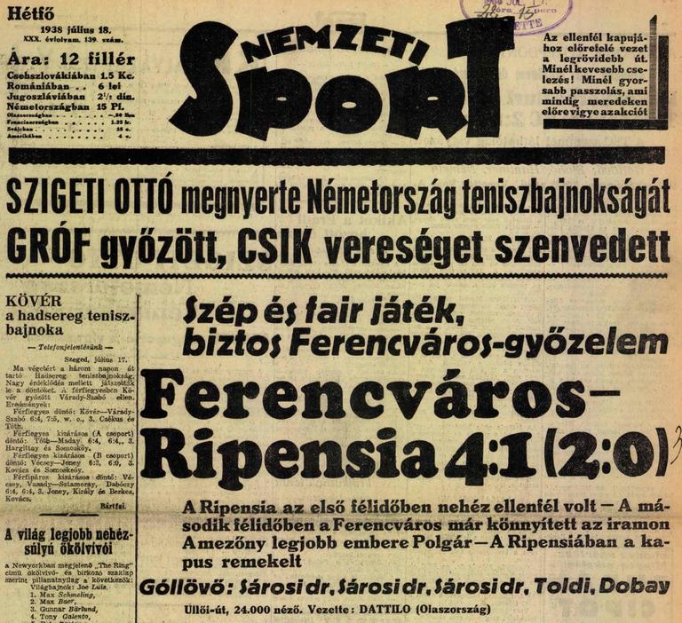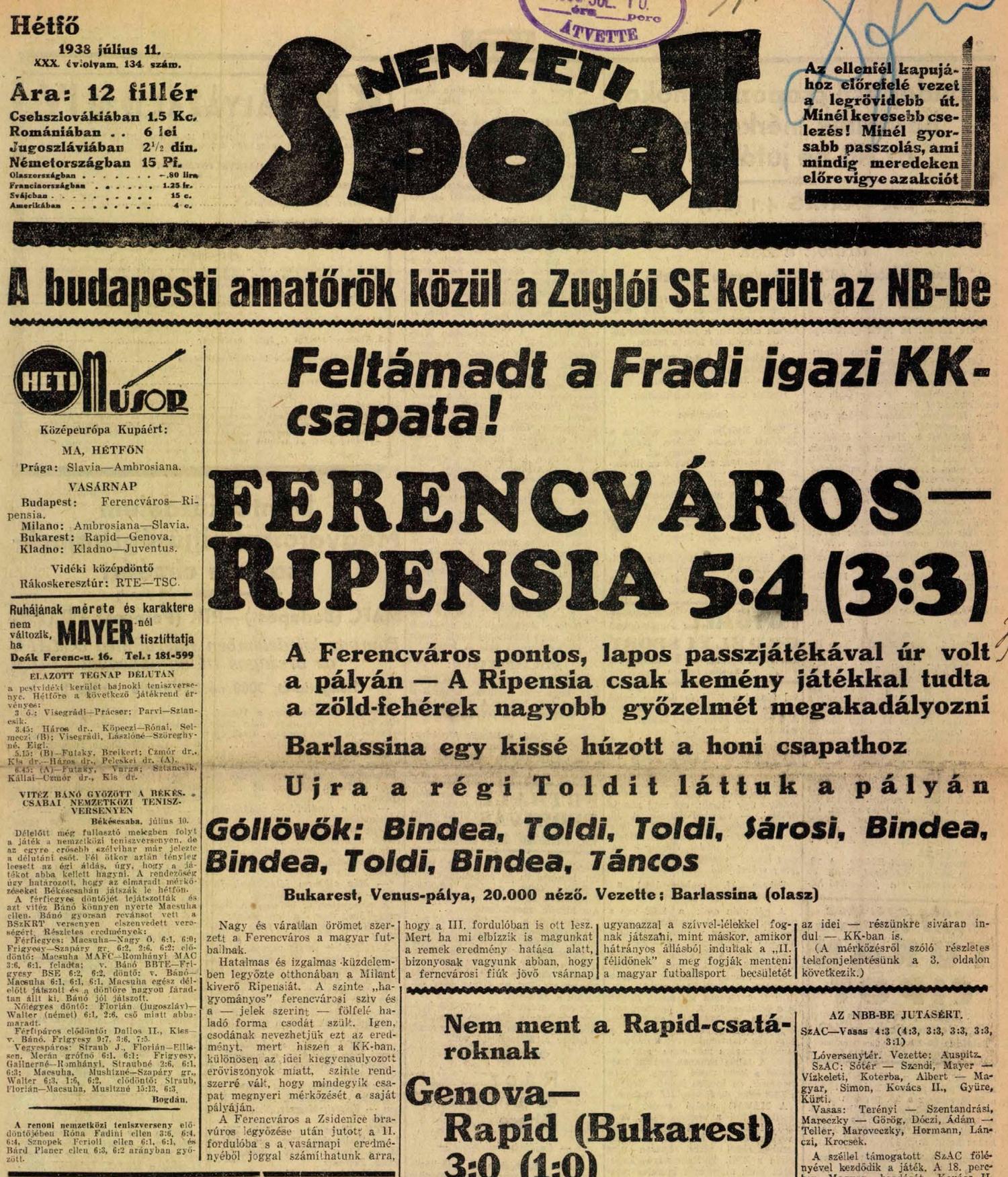 1938.VII.10. KK, Ripensia – Ferencváros 4:5 Közzétéve: 2009. február 7. szombat | Szerző: mjozef22 Egy kattintás ide a folytatáshoz.... →