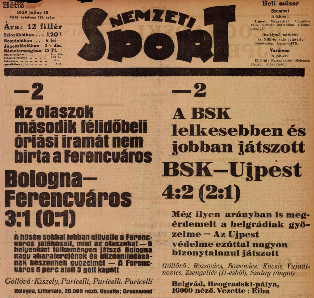 1939.VII.9. KK, Bologna – Ferencváros 3:1 Közzétéve: 2009. február 8. vasárnap | Szerző: K@rcsi Egy kattintás ide a folytatáshoz.... →