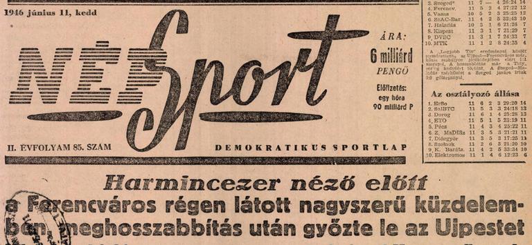 1946.VI.9. Ferencváros – Újpest 1:1 Közzétéve: 2009. február 15. vasárnap | Szerző: K@rcsi Tildy-serleg elődöntő: Ferencváros — Újpest 2:1 Egy kattintás ide a folytatáshoz.... →