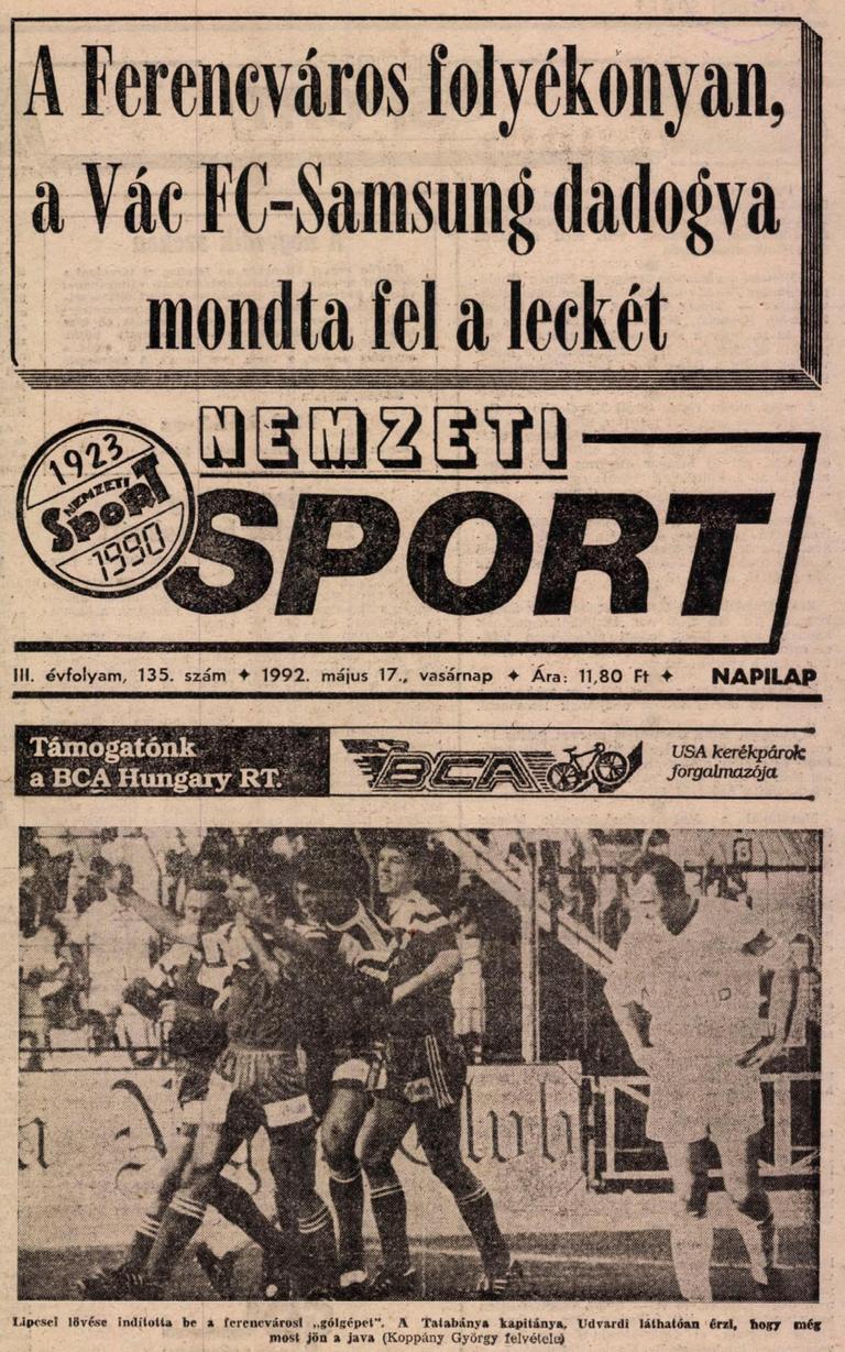 1992.V.16. Ferencváros – Tatabánya 3-1