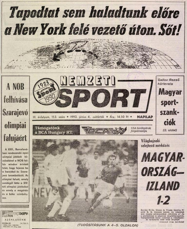 1992.VI.3. VB selejtező, Magyarország – Izland 1-2