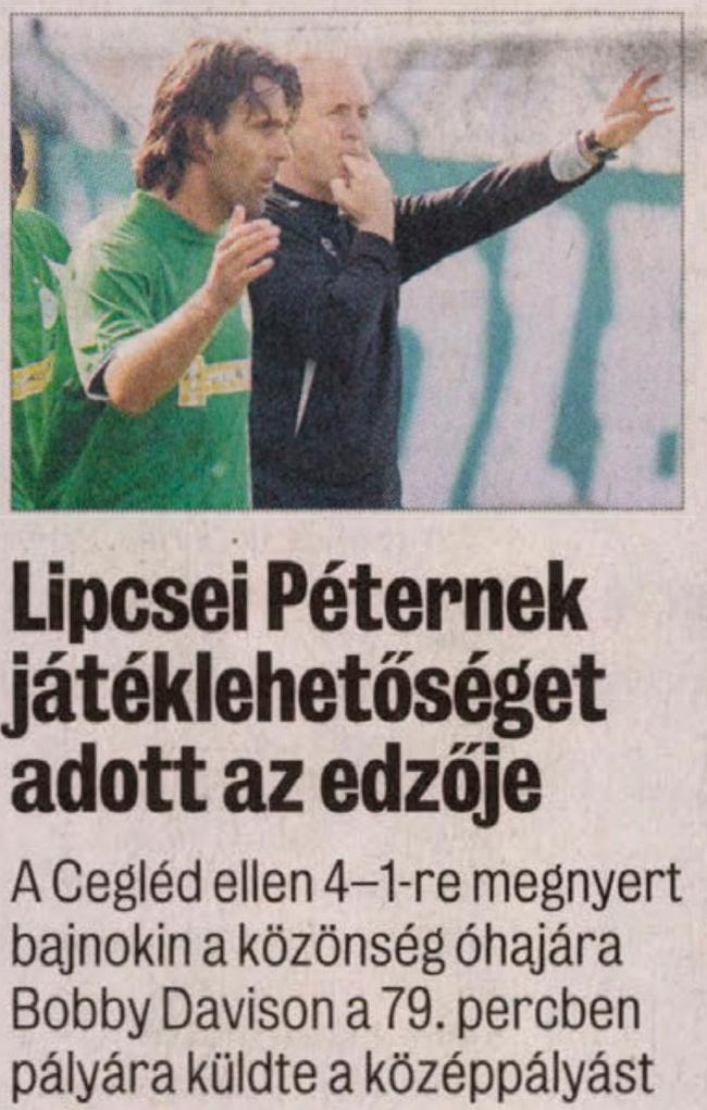 Csapatunk 4-0-ra nyert Kiskőrösön. Góljainkat Ferenczi (2), Robertson és Tóth B. szerezték. A hazai együttes 100. születésnapjára megrendezett találkozón pályára léptek az Angliából visszatérő légiósaink is: Wedgbury, Ashmore, Lowton és Robertson is. Egy kattintás ide a folytatáshoz....
