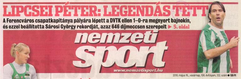 A Soproni Liga záró fordulójának második szombati találkozóján, Lipcsei Péter és Craig Short búcsúmérkőzésén a Ferencváros 2–0-s vereséget szenvedett a Budapest Honvéd otthonában. A hazaiak góljait a spanyol Pablo Coira és az olasz Angelo Vaccaro szerezte, előbbi szabadrúgásból, utóbbi a saját maga által kihagyott tizenegyes után ollózva volt eredményes. Egy kattintás ide a folytatáshoz....
