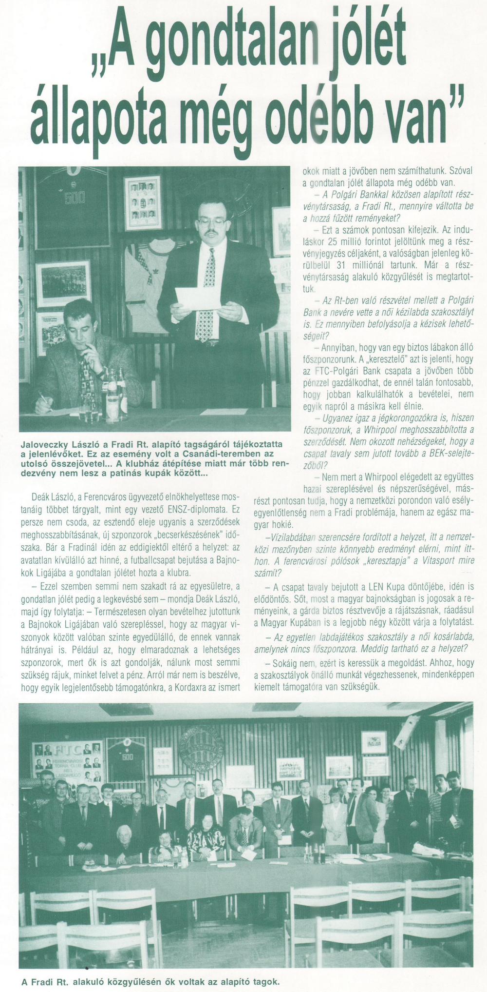 Kategória: Hírek, események | Címke: "a klub", 1995/96, Deák László, fh, Szívós István dr.