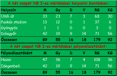 A két csapat 90. (Diósgyőrött a 43.) bajnoki mérkőzése következik. Ez történt a múltban.