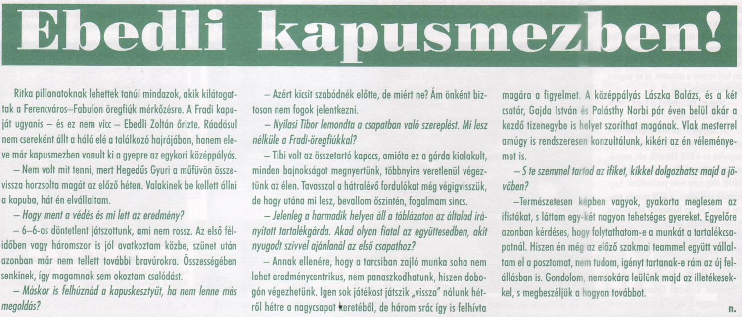 Kategória: Hírek, események | Címke: "mezőnyjátékos a kapuban", Ebedli Zoltán, életrajzokhoz, fh