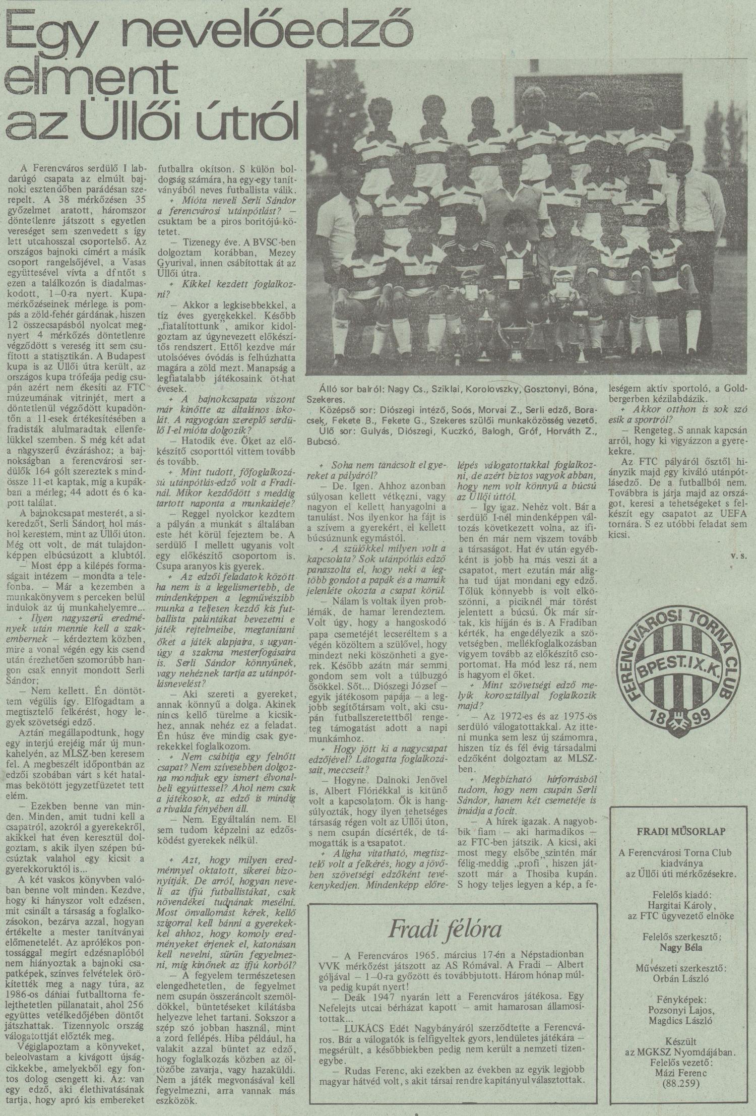 Kategória: Szakmai stáb | Címke: 1987/88, fh, Serli Sándor, utánpótlás