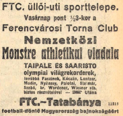 Mielőtt azonban a sikeres időszak Fradihoz kapcsolódó mérkőzéseire emlékeznénk, kezdjük az „alapokkal”. A két világháború közötti években edzőmérkőzéseken léptünk pályára a Tatabánya ellen, és volt egy „különleges” mérkőzés is, 1912.VIII.25-én, melyet előbb még „football-döntő Magyarország bajnokságáért” hirdettek, később azonban „barátságossá zsugorodott”. A mérkőzést az FTC nyerte 4:3-ra a Tatabánya ellen. Érdekesség, hogy a vendégeknél pályára lépett az FTC-ből 1911 őszén átlépett Schaffer Alfréd, aki 1943 nyarától 46 mérkőzésen ült a Fradi kispadján és aki játékosként és edzőként is európai hírnevet szerzett.