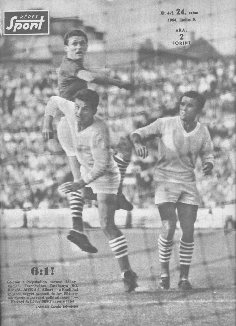 1964.VI.7-én még nagyobb „pofonba” szaladtak bele a tatabányaiak. A Népstadionban, 70 ezer (!) néző előtt Albert négy góljával, melyhez Varga és Fenyvesi II. és hozzátett egyet-egyet (a vendégek gólját Menczel Iván szerezte, aki néhány évvel később a Vasasban ért el sikereket), 6:1-re győztünk. Ezzel 13. forduló után négy pont előnnyel vezettük a tabellát, amit ki sem engedünk a kezünkről, ezzel megszerezve a 19. bajnoki címünket. Az 1964-s év az olimpia miatt is emlékezetes mindkét csapat számára: válogatott edzője Dr. Lakat Károly, játékosként a Fradiból Novák Dezső (csapatkapitány) és Varga Zoltán, a Tatabányából Gelei József, Szepesi Gusztáv és Cserna Tibor szerzett olimpiai aranyérmet.