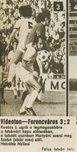1974. szeptember 14., FTC-Videoton SE 2:3 (1:2) Üllői út, 30 000 néző.