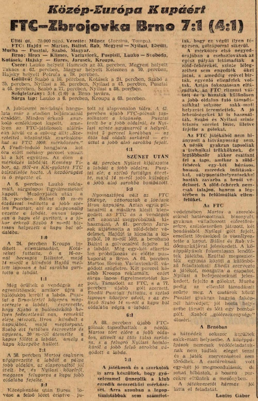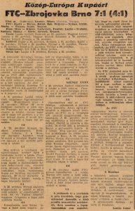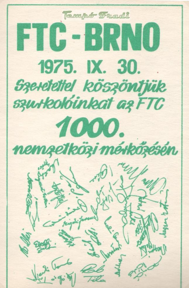 1975. október 1. FTC—Zbrojovka Brno 7:1 (4:1) Üllői út, 25 000 néző.