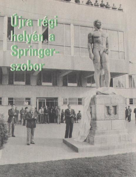 A pályával kapcsolatos következő jeles esemény a felújított Springer-szobor átadása volt 1977. szeptember 24-én. A régi alkotás restaurálása Bálint István építész szakértelmét dicséri. Az FTC–Székesfehérvári MÁV Előre találkozó futballistái a meccs előtt felsorakoztak a szobor mellett, amikor Harót János leleplezte a Springer-szobrot. A Fradi Ebedli Zoltán góljával 1–0-ra nyert, „Ebédlő” a szobor előtti kapuba talált be.