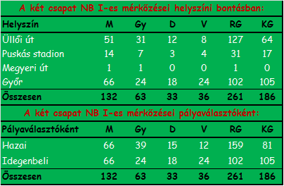 További érdekes adat, statisztikai kimutatás “A Ferencváros, Győr elleni mérkőzései“ bejegyzésünknél olvasható. Mivel a két csapat eddig 154 alkalommal találkozott tétmérkőzésen egymással (72 FTC, 38 döntetlen, 43 ETO győzelem 301-213), így elég sokat kell “görgetni” a lapon, hogy feltároljon a közös történet összefoglaló “jelentése”.