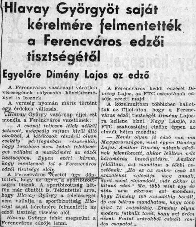 Hlavay Györgyöt felmentették, egyelőre Dimény Lajos az edző Közzétéve: 2009. február 8. vasárnap | Szerző: K@rcsi Hlavay Györgyöt saját kérelmére felmentették a Ferencváros edzői tisztségétől Egyelőre Dimény Lajos az edző Vélemény, hozzászólás? Válasz megszakításaAz e-mail címet nem tesszük közzé. A kötelező mezőket * karakterrel jelöltük Hozzászólás * Név * E-mail cím * Honlap Δ