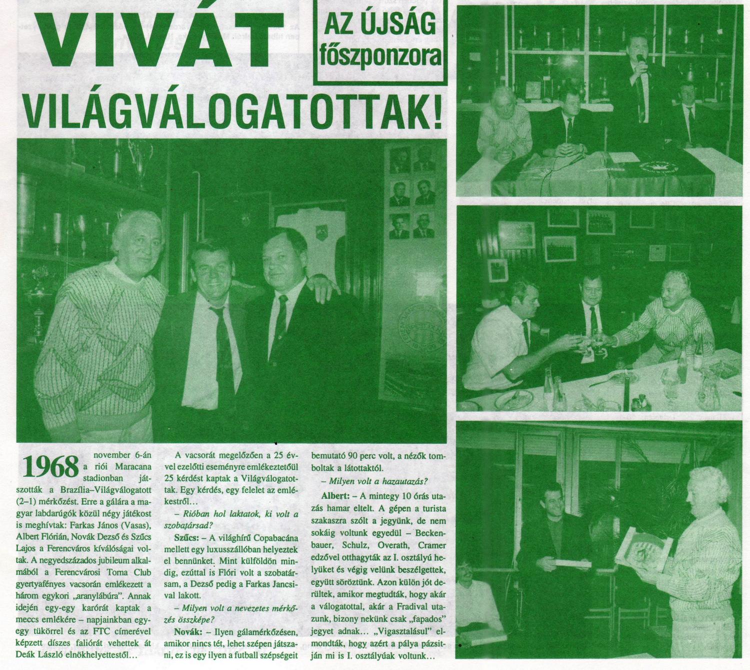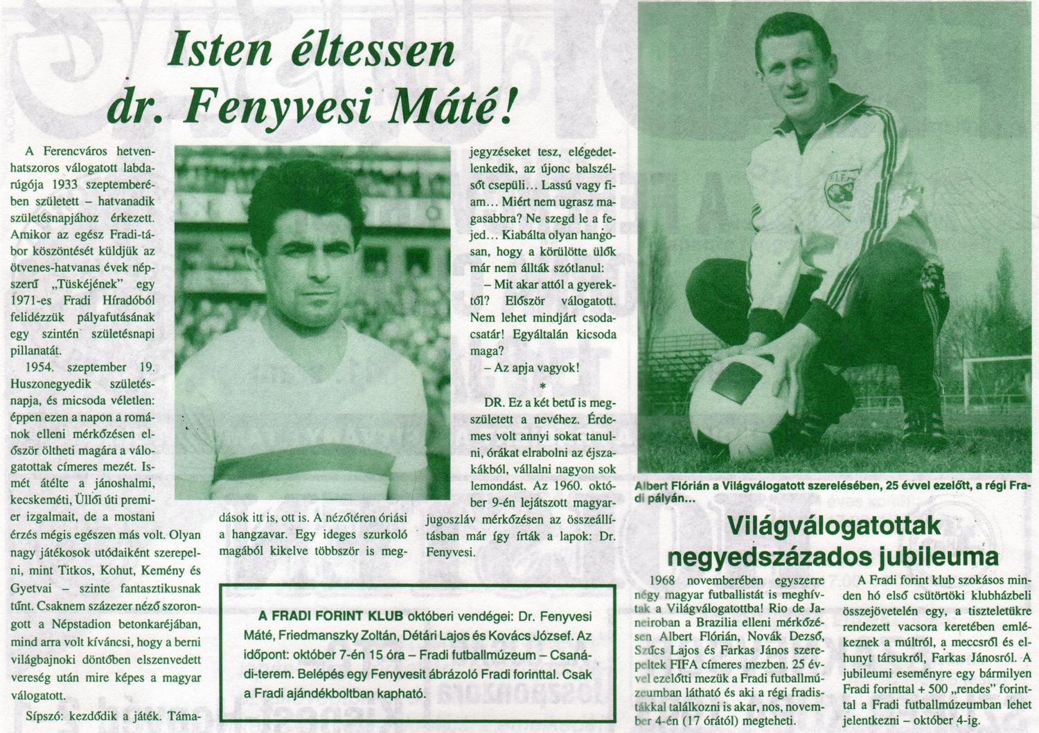 Kategória: Köszöntők | Címke: Albert Flórián, Farkas János, Fenyvesi Máté dr., fh, Novák Dezső, Szűcs Lajos (fedezet), világválogatott