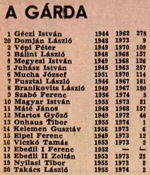 Kategória: Játékoskeret | Címke: 1974/75, Bálint László, Branikovits László, Domján László, Ebedli Ferenc, Ebedli Zoltán, Eipel Ferenc, Engelbrecht Zoltán, Géczi István dr., játékoskeret, Juhász István dr., Kelemen Gusztáv, Magyar István, Martos Győző, Máté János I., Megyesi István, Mucha József, Nyilasi Tibor, Onhausz Tibor, Pusztai László, Szabó Ferenc II., Takács László, Vépi Péter, Viczkó Tamás