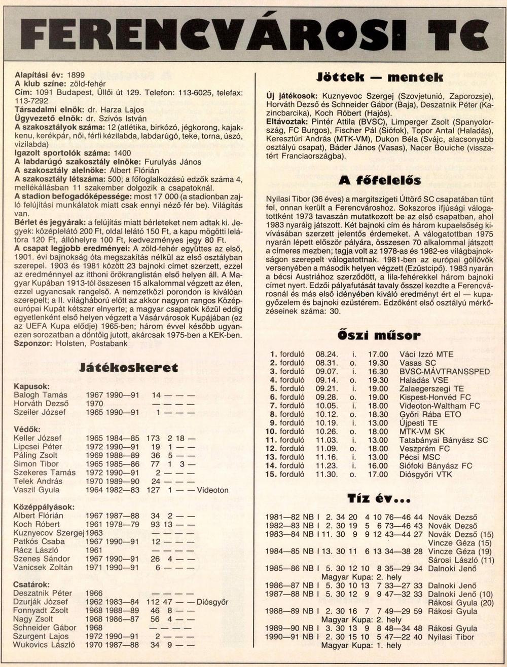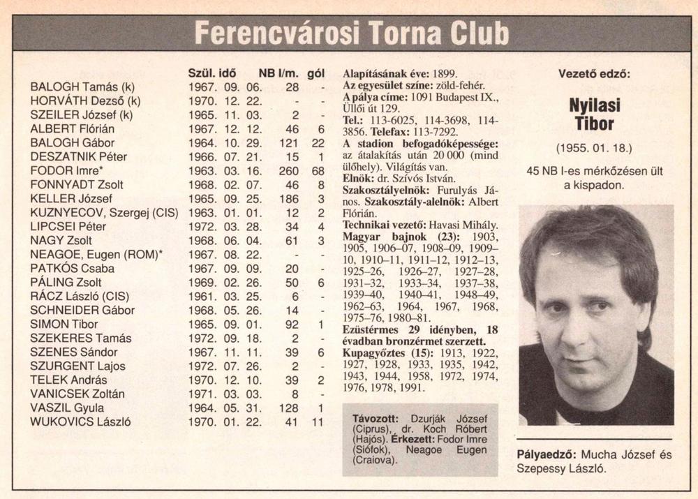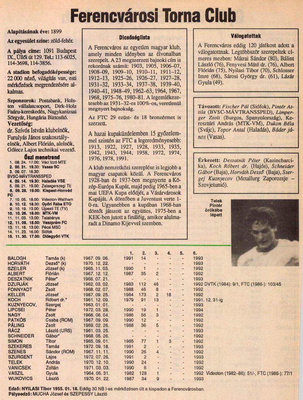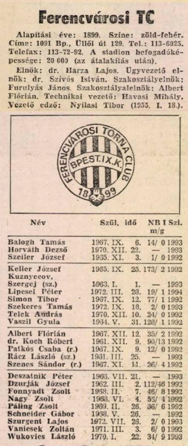 Kategória: Játékoskeret | Címke: 1991/92, Albert Flórián, Albert Flórián ifj., Balogh Gábor, Balogh Tamás, Deszatnik Péter, Dzurják József, Fodor Imre, Fonnyadt Zsolt, Furulyás János, Golecz Lajos, Horváth Dezső, igazolások, játékoskeret, Keller József, Koch Róbert, Kuznyecov Szergej, Lipcsei Péter, Mucha József, Nagy Zsolt, Neagoe Eugene, Nyilasi Tibor, Páling Zsolt, Patkós Csaba, Rácz László, Schneider Gábor, Simon Tibor, szakmai stáb, Szeiler József, Szekeres Tamás, Szenes Sándor, Szepessy László, Szívós István dr., Szurgent Lajos, Telek András, Vanicsek Zoltán, Vaszil Gyula, Wukovics László
