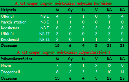 A két csapat bajnoki mérkőzésein Lipcsei Péter és Rósa Dénes lépett a pályára legtöbbször, hat alkalommal. Jelenlegi keretünkből Gyömbér, Böde és Jova öt mérkőzésnél jár…