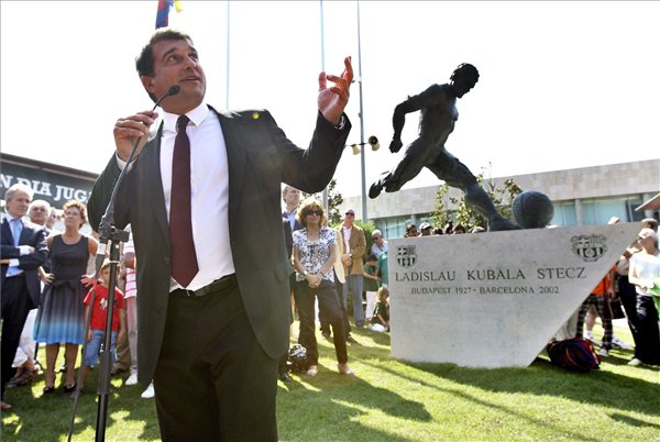 2009-ben avatták fel szobrát a Nou Camp előtt. Joan Laporta beszéddel méltatta a klub hősét (MTI/EPA)