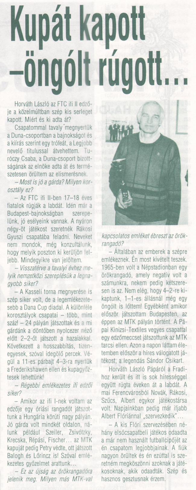 Kategória: Szakmai stáb | Címke: 1995/96, életrajzokhoz, fh, Horváth László, utánpótlás