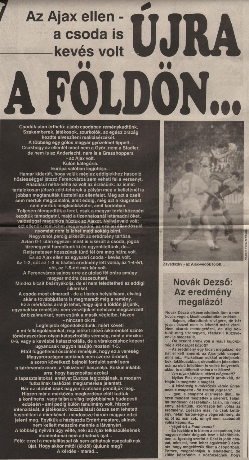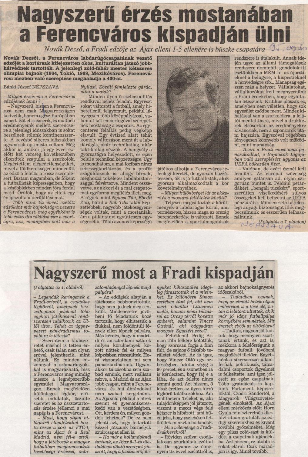 - Népszava: „Nagyszerű érzés mostanában a Ferencváros kispadján ülni”
