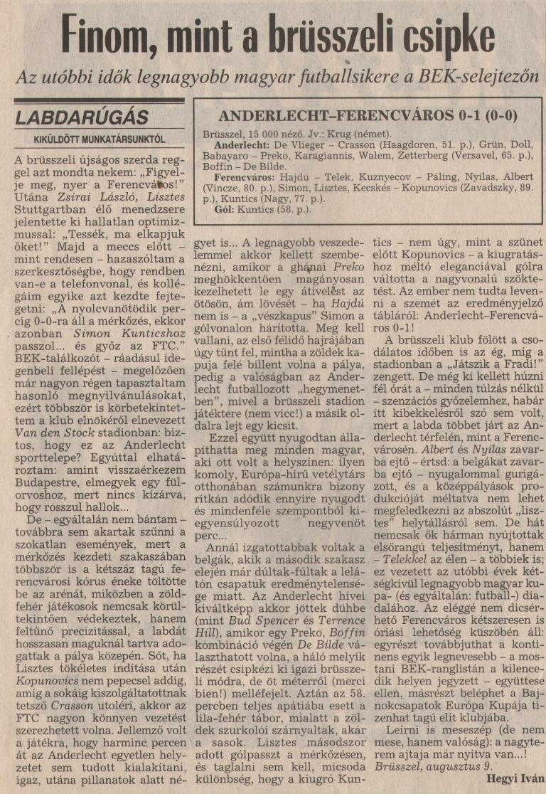 - Népszabadság: Finom, mint a brüsszeli csipke – Örökzöld diadal lehet