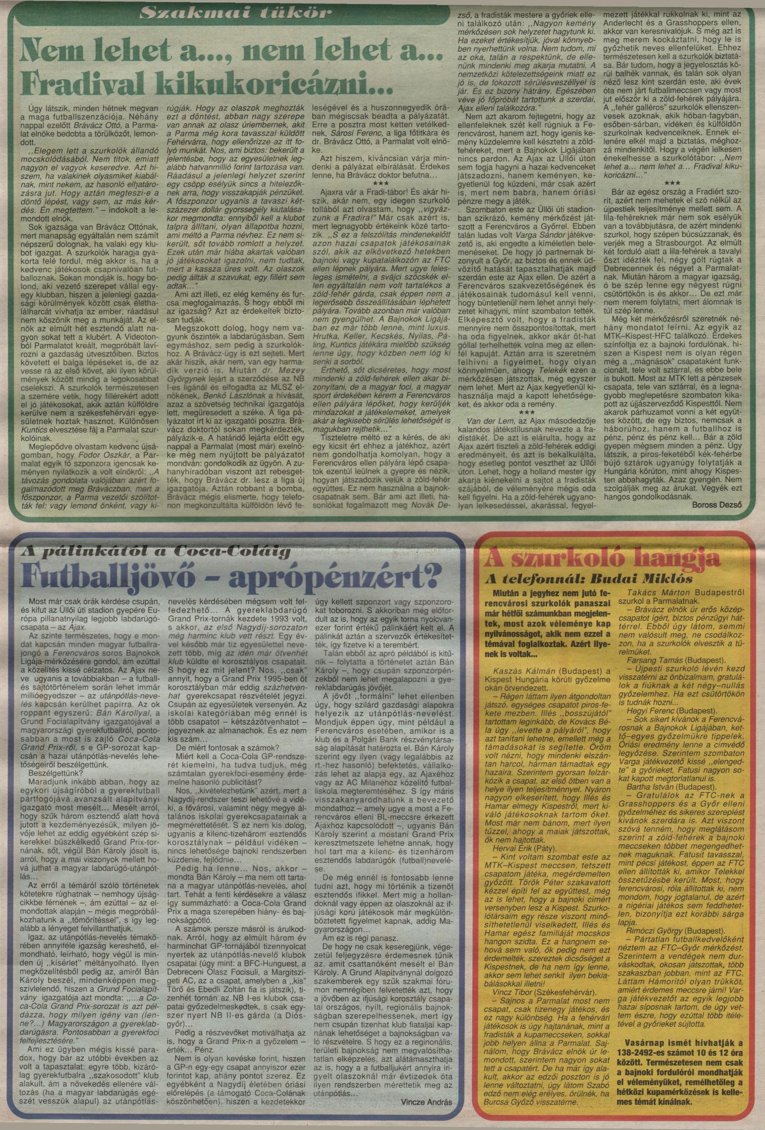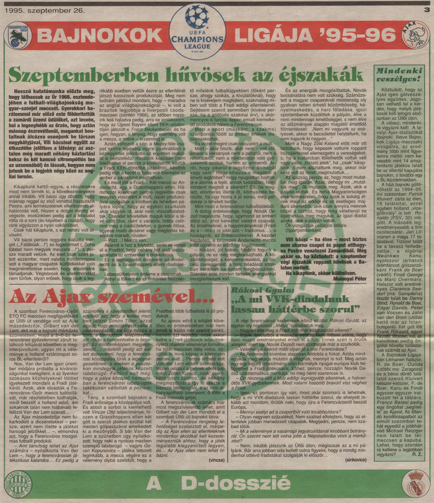« 1995.IX.23. Ferencváros – Győri ETO 2-0 Telek, lakás, kocsi, a szentháromság kora, avagy az edző a hátát támassza mindig… »