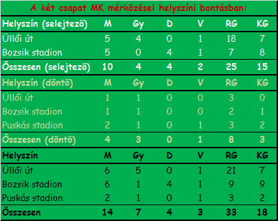 A két csapat 15. MK mérkőzése következik. Az örökmérleg Fradi-fölényt mutat, de selejtező-mérkőzést még nem nyertek a zöld-fehérek Kispesten. Ez történt a múltban.