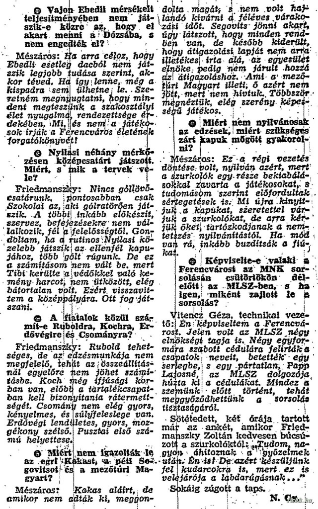 Ugyanakkor arra igen, hogy mekkora tapsot kapott Friedmanszky, amikor a taktikai cserék hasznáról beszélt.