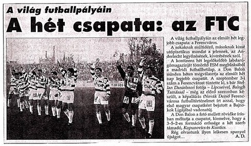 A Nemzeti Sport, ígéretéhez híven bőven foglalkozik a csapattal és az ellenfeleinkkel. Hirül adták, hogy az Ajax képviselője itt járt Budapesten, szállodanézőben. Valószínű, hogy a Margit-szigetre mennek majd lakni. A csapat egyébként parádésan szerepel, hisz eddig minden mérkőzést megnyert ebben a szezonban, és gólt is csak egyetlen-egyet kapott. A csoport másik nagyágyúja, a Real Madrid azonban botladozik, hisz hat mérkőzése közül ötször vesztesként hagyta el a játékteret. Pedig ugyanazok a játékosok játszanak, akik tavaly simán és vita nélkül nyerték a nagyon magas színvonalú spanyol bajnokságot. Az argentin világbajnok edző, Valdano és a csapat irányítója a dán Laudrup között azonban megbomlott az összhang. A játékos kimaradt a csapatból, a szekér azonban nélküle – döcög. Az „egyedül” maradt Zamorano ugyan ontja a gólokat, de a gólpasszokat adó ész, nagyon hiányzik. Talán ez lehet a fogódzó nekünk, hogy az eddigi bravúrokat egy világraszóló bravúrral koronázzuk meg és továbbjussunk a csoportból.