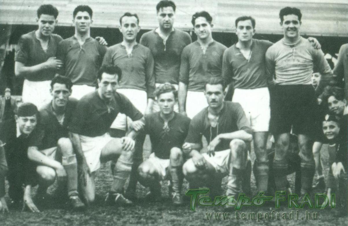 A Fradit 5:0-ra legyőző Szeged csapata. Állnak, balról: Gyuris, Kalmár, Harangozó, Toldi, Kis-Kalkusz, Báló, Tóth. Guggolnak: Bognár, Baróti, Lakat, Szabó.