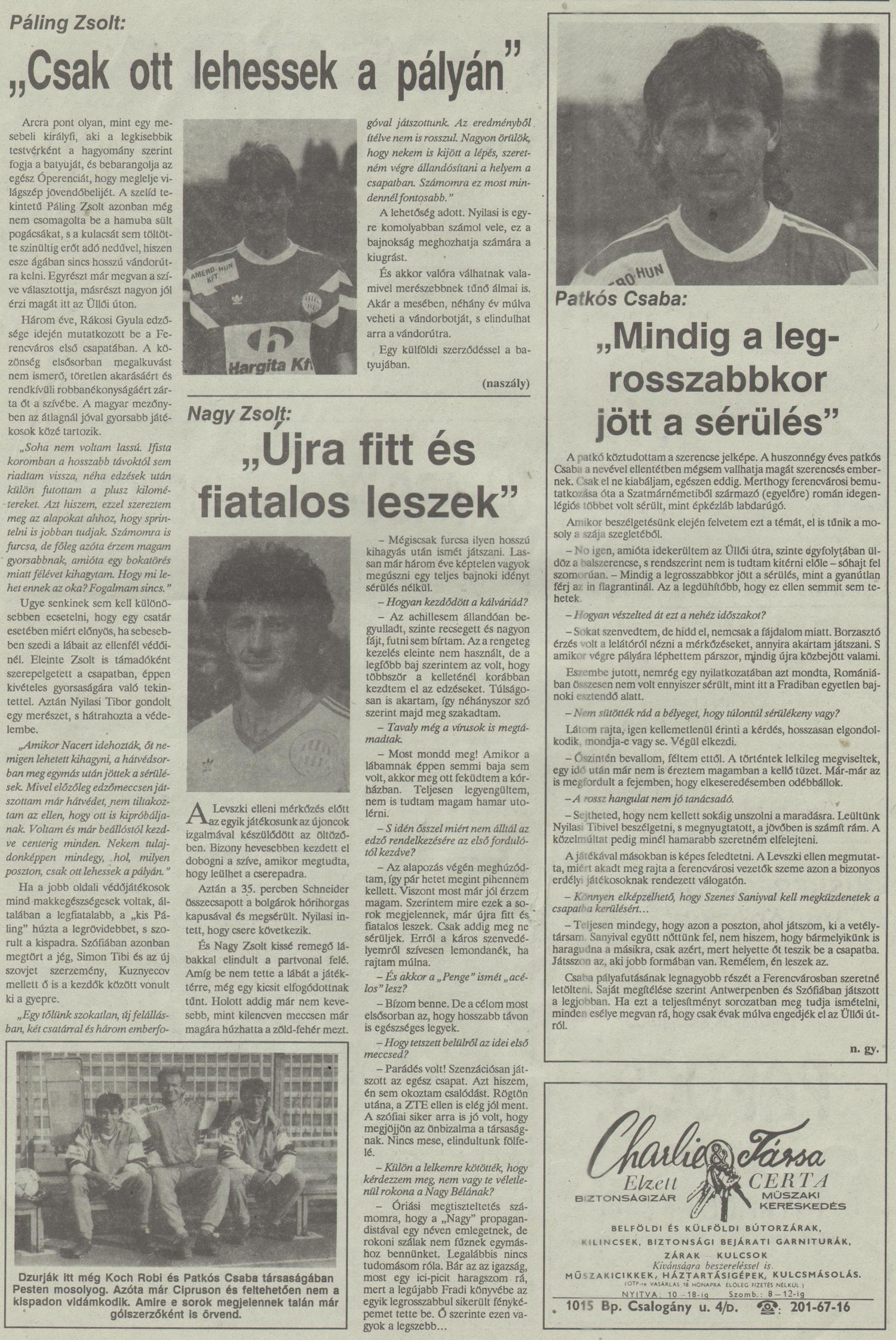 Páling Zsolt: „Csak ott lehessek a pályán” Közzétéve: 2009. április 1. szerda | Szerző: K@rcsi Nagy Zsolt: „Újra fitt és fiatalos leszek” Patkós Csaba: „Mindig a legrosszabbkor jött a sérülés” Vélemény, hozzászólás? Válasz megszakításaAz e-mail címet nem tesszük közzé. A kötelező mezőket * karakterrel jelöltük Hozzászólás * Név * E-mail cím * Honlap Δ