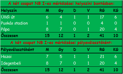 A Ferencváros bajnoki örökmérlege a Pápa ellen: