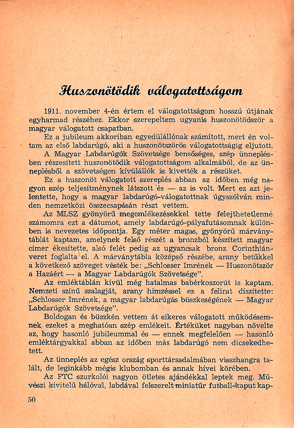 Schlosser Imre – Fél évszázad a futballpályán 9.rész
