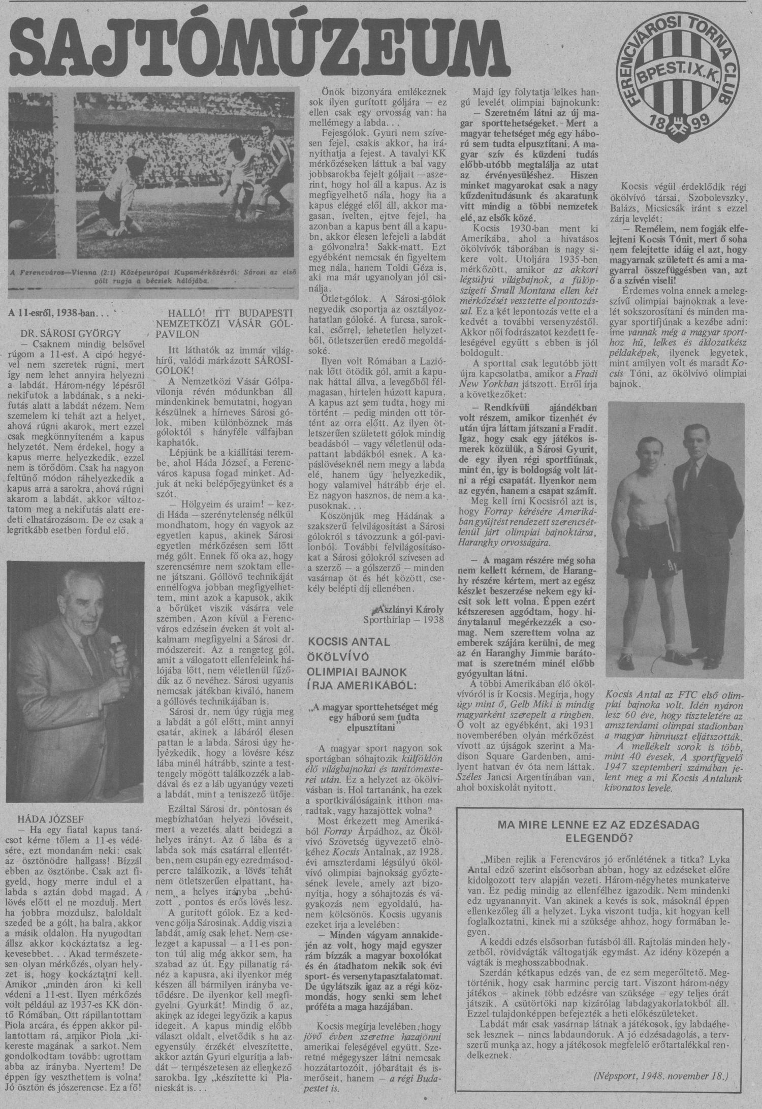 Kategória: Jegyzet, Sportolók | Címke: 1937/38, 1938/39, 1948/49, Aszlányi Károly, fh, Háda József, Kocsis Antal, Lyka II. Antal, Sárosi György dr.
