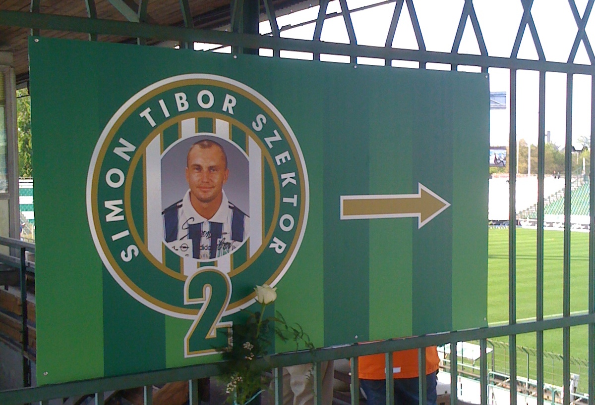 A zöld-fehérek korábbi válogatott védőjének fia, ifjabb Simon Tibor, illetve a klub elnöke, Kubatov Gábor közösen rögzítették a szektor bejáratánál azt a táblát, amellyel a kemény stílusáról és hatalmas munkabírásáról elhíresült játékosra emlékeznek.