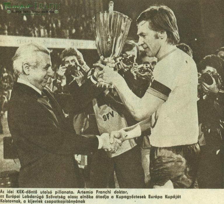 Ehhez jött még Bálint sérülése, akit Pataky dr. helyettesített. A középhátvéd 1974 nyarán érkezett Szegedről a Fradiba és bár komoly NB1-s múlttal rendelkezett, az Üllői úton csak 3 mérkőzések lépett pályára, melyből két felejthetetlen KEK találkozó: 1973 őszén Liverpoolban Martost helyettesítette, majd a bázeli döntőben Bálintot kellett pótolnia. A bázeli döntőt simán nyerte a Kijev, számunkra mégis büszkeséget jelent, még akkor is, ha az akkori média nem nagyon értékelte a Fradi teljesítményét. Érdekes, hogy az 1975-s Népsport első oldalán is fontosabb volt a Felszabadulás Kupáról képet közölni, mint a Fradi csapatképet kitenni (a részletesnek éppen nem mondható tudósításban már szerepel), valamint egy „Méltó kezekbe került a kupa” főcímmel egy kicsit „lejáratni”az elért sikert.