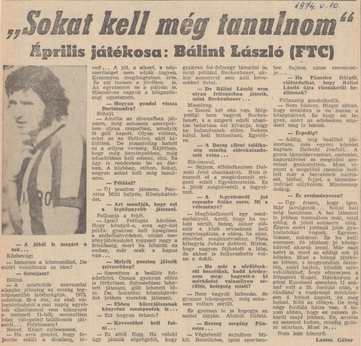 Kategória: Sportolók | Címke: 1973/74, Bálint László