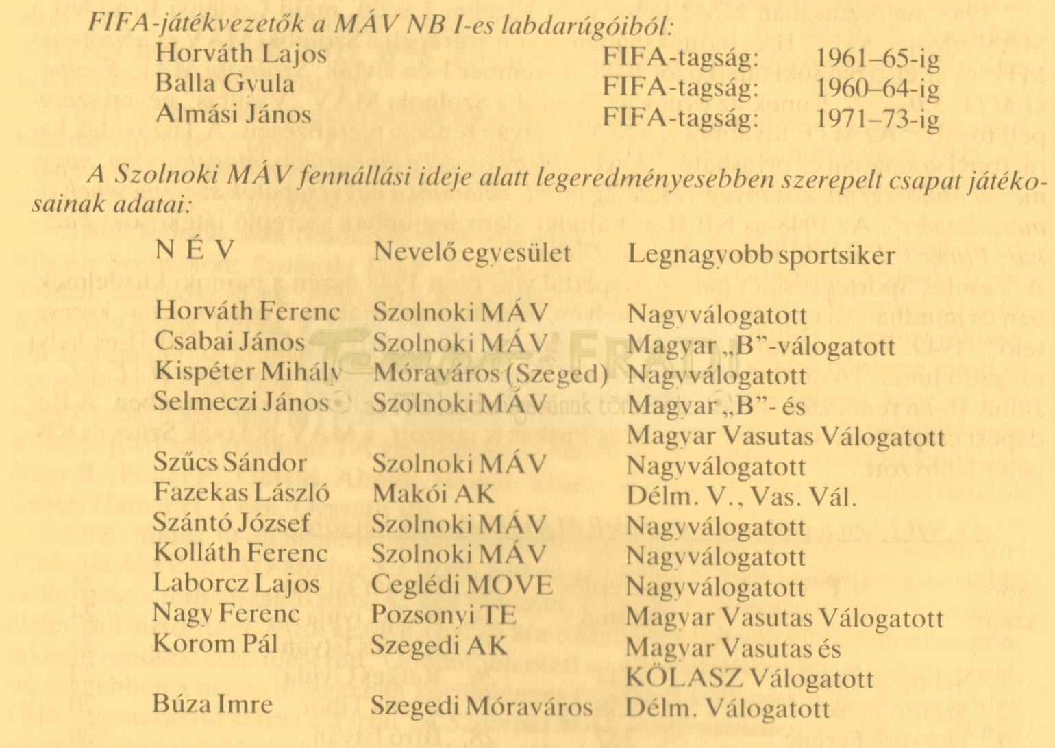 Ez időben MÁV játékosok: Horváth, Csabai, Kispéter, Selmeczi, Szűcs, Fazekas, Szántó, Kovács, Kolláth, Laborcz, Nagy, Korom, Vezér, Horváth L., Nagy II, Nagy III, Buza. 1944. május 14-én, 27 mérkőzés után az NB I állása: 1. Nagyvárad, 2. Kolozsvár, 3. Ferencváros, 4. Gamma, 5. Újpest, 6. Szolnoki MÁV.
