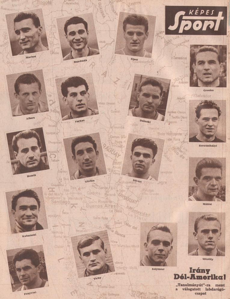 Magyarország: Grosics (Tatabánya) — Mátrai (FTC), Sipos (MTK), Sárosi (Vasas) — Solymosi (Diósgyőr), Kotász (Bp. Honvéd) — Sándor (MTK), Göröcs (Ú. Dózsa), Albert (FTC), Tichy (Bp. Honvéd), Bödör (MTK)